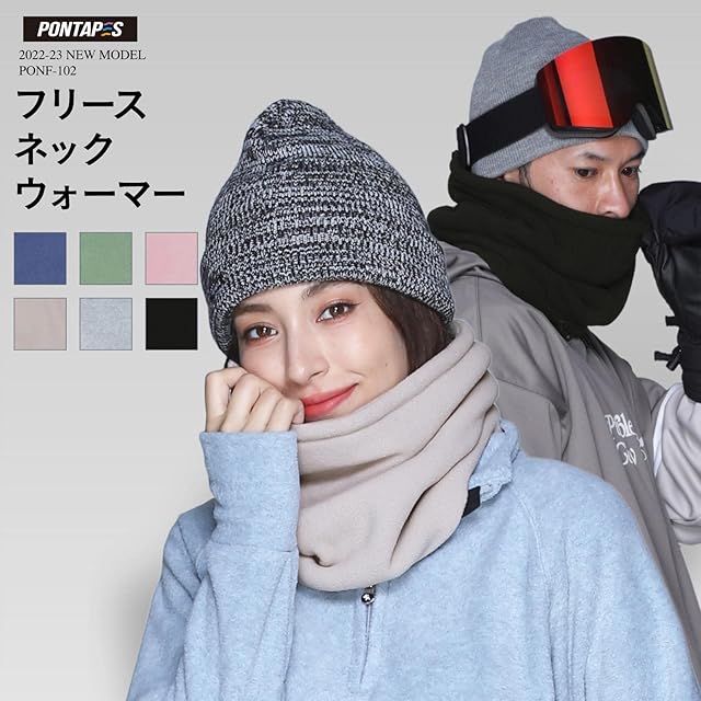 PONTAPES(ポンタペス) ネックウォーマー メンズ レディース スキーやスノーボードに サイズ調節コードつき 全8色 男女兼用 PONF-102 カーキサイズ 防寒 スノボ バイク スノボ