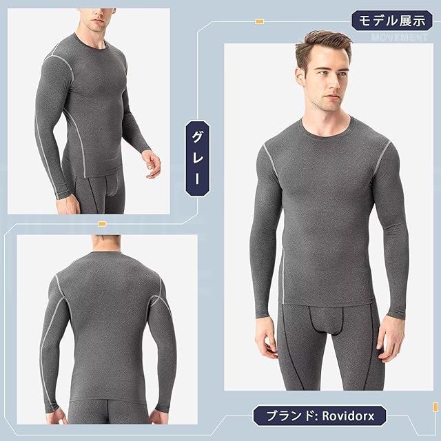 [Rovidorx] コンプレッションウェア メンズ 長袖 アンダーシャツ コンプレッションインナー スポーツ インナー 加圧シャツ 冷感インナー アンダーウェア 吸汗速乾 1019-gr-2XL