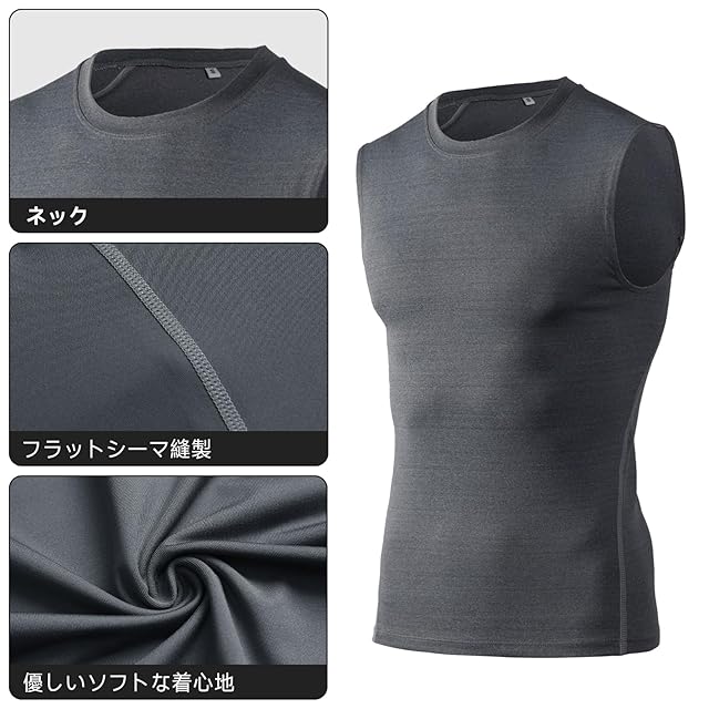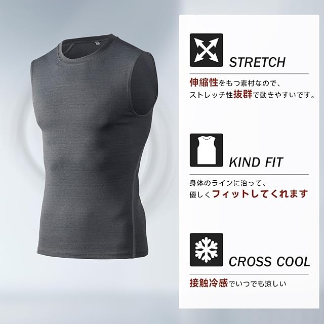 [Barifall] タンクトップ メンズ コンプレッションウェア ノースリーブ スポーツインナー アンダーシャツ 加圧シャツ トレーニングウェア 吸汗 速乾 通気 冷感1002gy-2XL