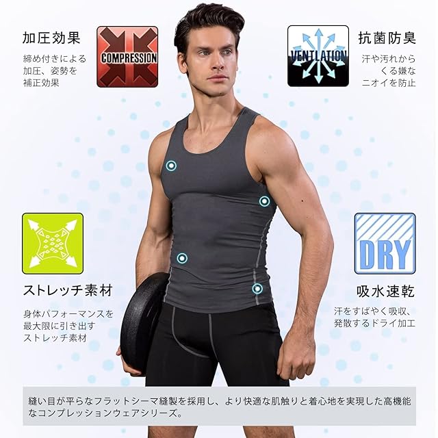 【耐久性】しっかりとした丈夫な素材が使われているので耐久性抜群、運動後も形が崩れずコンプレッションウェア です。