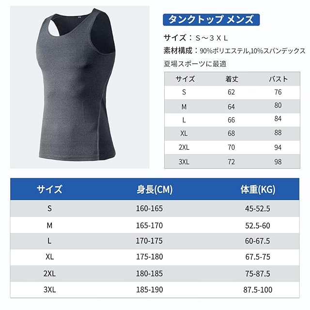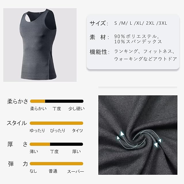 [Muxuryee] タンクトップ メンズ アンダーシャツ スポーツインナー コンプレッションインナー メンズ 吸汗速乾 接触冷感 1001 GY 2XL
