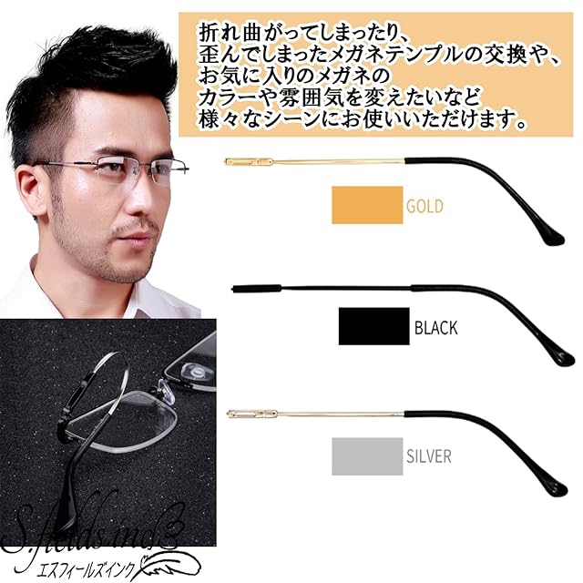 [S.fields.inc] [エスフィールズインク] メガネテンプル フレキシブルアーム 形状記憶合金 ヒント付き 眼鏡つる交換 眼鏡フレーム修理 (ゴールド)