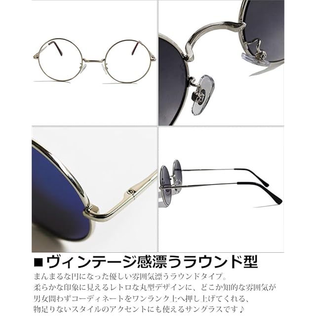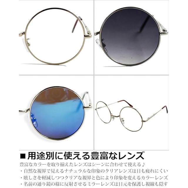 [クインテット] 伊達めがね サングラス 丸メガネ ラウンド カラーレンズ ロイド 丸型レンズ メンズ レディース 07-ty-3519 (4:ゴールド/クリア)