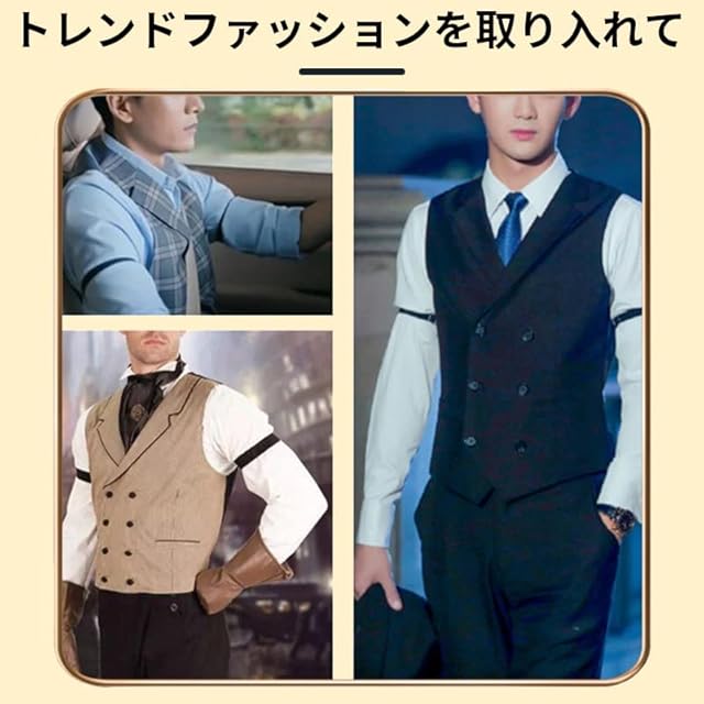 【製品の用途】:そんなときはこのアームバンド!サッと腕に通すだけで、お好みの袖丈に簡単調節できます。袖がキマると、スーツ姿もビシッ!とカッコ良いんです。