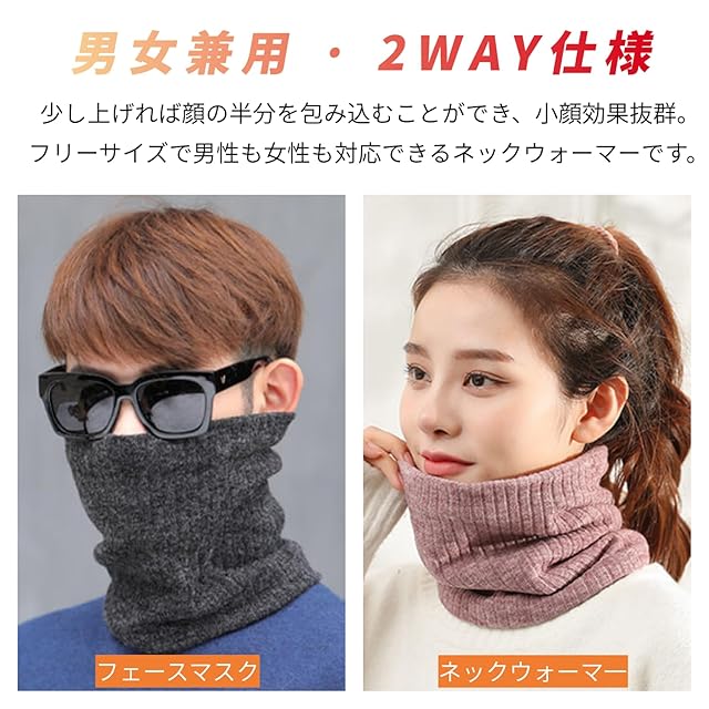 【極めた暖か】このネックウォーマーは柔らかくて高い弾力性のある素材が採用しており、360度顔と首をしっかり覆うことができます。生地を二重に使用して保温性向上なネックウォーマー。表面は繊細なニット編みで、外気を遮る壁となり、寒さを感じやすい首元を守ってくれます。