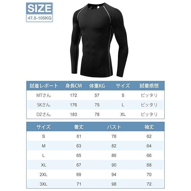 [THREEGUN] スポーツインナー メンズ 大きいサイズ 長袖 アンダーシャツ 防寒インナー コンプレッションインナー スポーツ シャツ スキー ゴルフ 保温 速乾(ブラック2XL)
