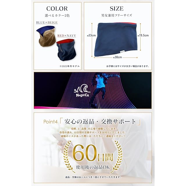 ✅《男女兼用》【 素材 】表地 表/フリース(ポリエステル100%)裏/メッシュ( ポリエステル100%)【 サイズ(約㎝)】フリーサイズ☆高さ 約23㎝ ☆首回り 約60㎝ (※サイズは平置き手作業採寸です)【2カラー 】①ネイビー/赤、②ベージュ/濃紺