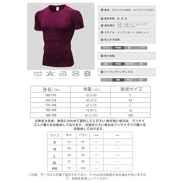 【C特性】①,ストレッチに優れた素材を採用してことで、どんな動きにも筋肉を最適に締めるフィット感。適度な着圧で背筋を伸ばし、お腹周りをすっきりと見せてくれます。②,スポーツシャツがグリッド模様のメッシュ構造で天然の通気穴を形成し、かつてない究極の通気性を実現する。③,長時間運動による汗を素早く吸収、拡散し、爽やかな肌触りをキープできます、夏でも爽やかに過ごします。