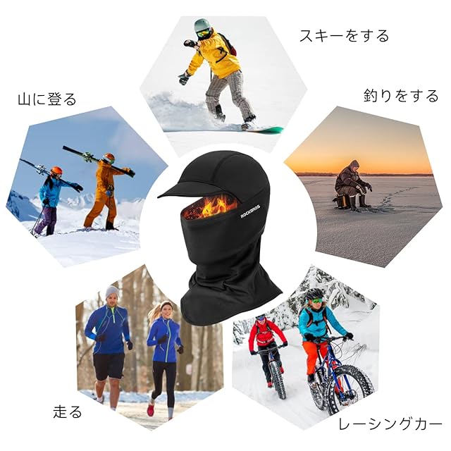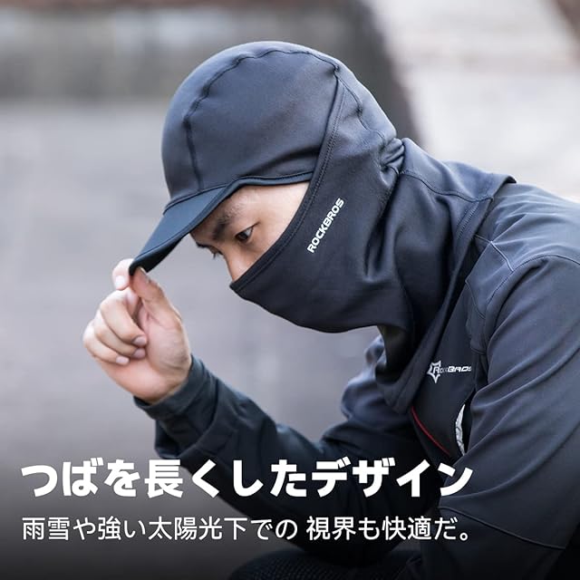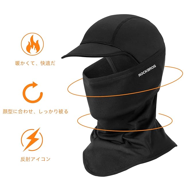 ROCKBROS(ロックブロス) ネックウォーマー バラクラバ つば付き目出し帽 フェイスカバー 冬用 防寒 裏起毛 息苦しくない 柔らかい 暖かい バイク 自転車 スキー サイクリング 通勤 通学 男女兼用