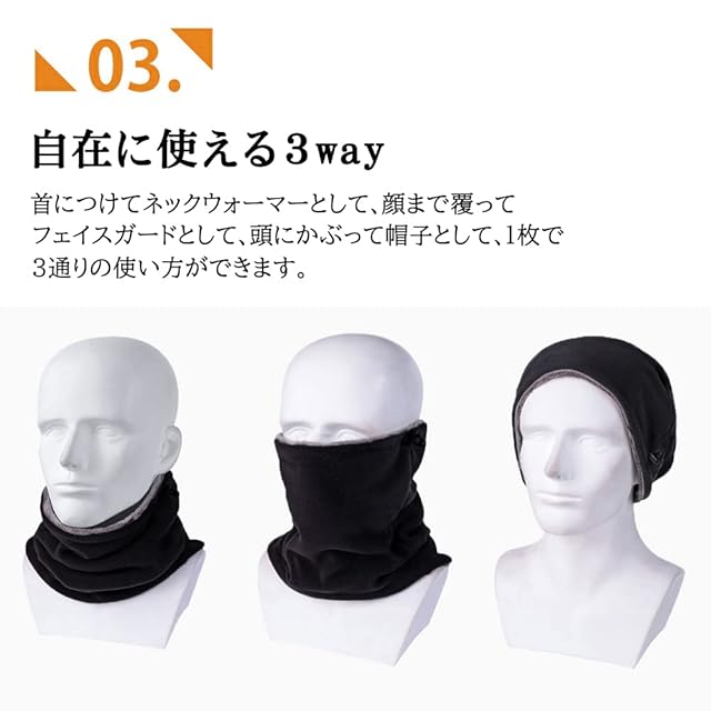 【多様なシーン活躍】 ネックガード(ネックウォーマー)、フェイスガード(フェイスウォーマー)として使用できます。 普段の通勤や通学の防寒アイテムとしてはもちろん、バイク、自転車、スキー、スノボ、冬のウィンタースポーツでも大活躍間違いなし!