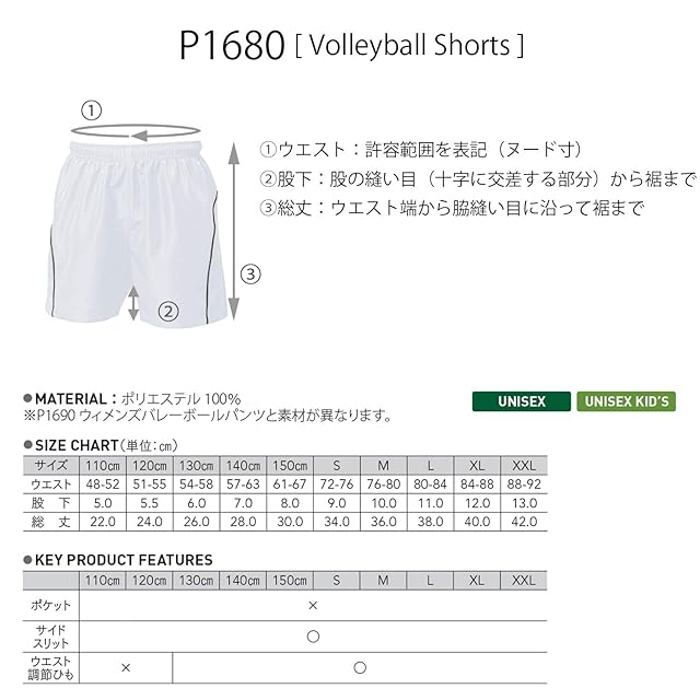 wundou(ウンドウ) P-1680バレーボールパンツ P-1680 60ホワイト×ダークグレー 150