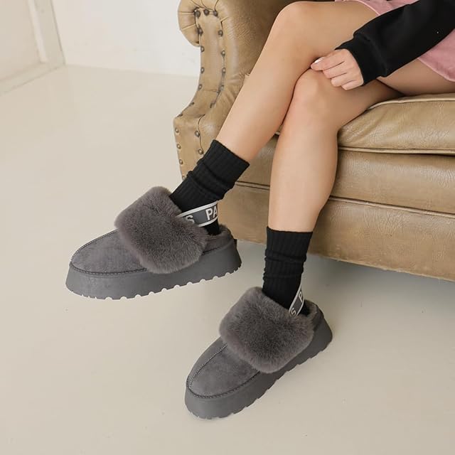 [デメテル] 厚底ソール ボリュームファー バックストラップ ムートンスリッパ レディース 29897-L12 (グレー, L)