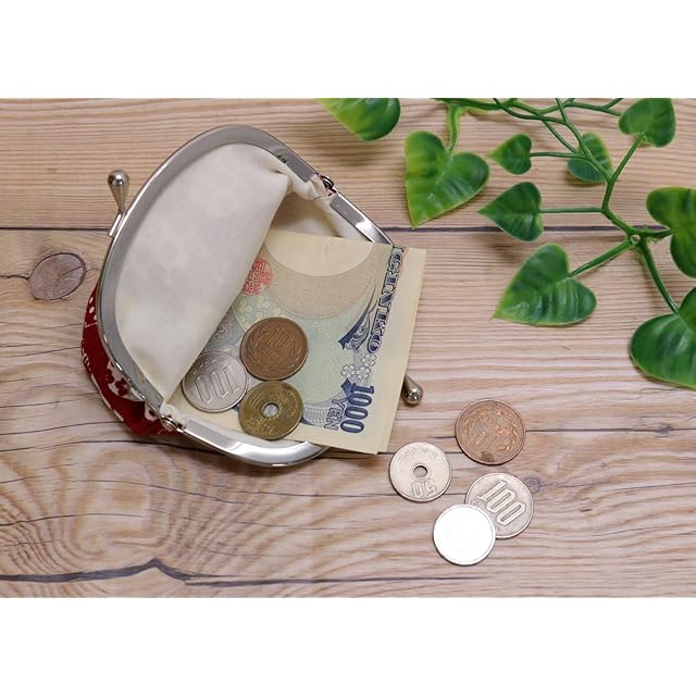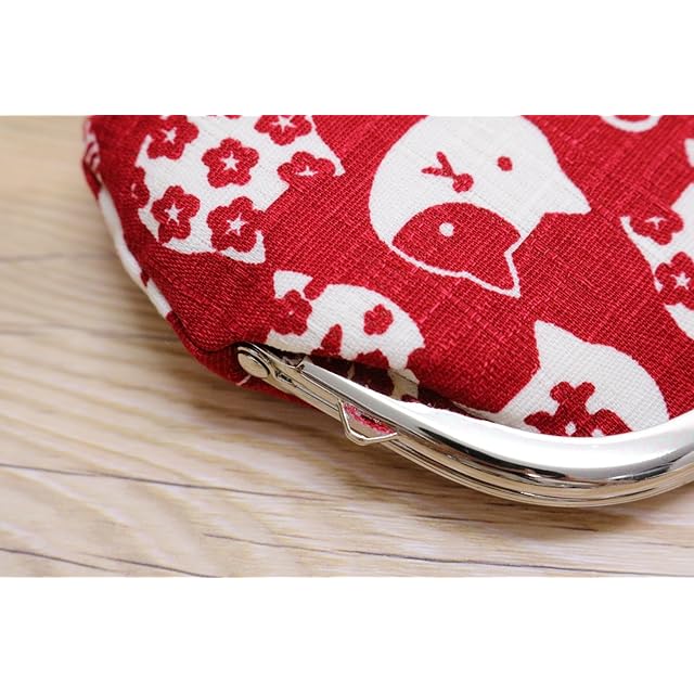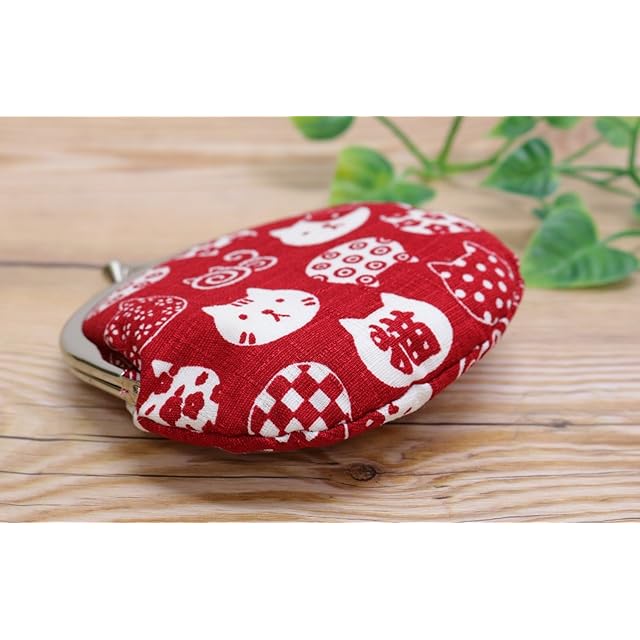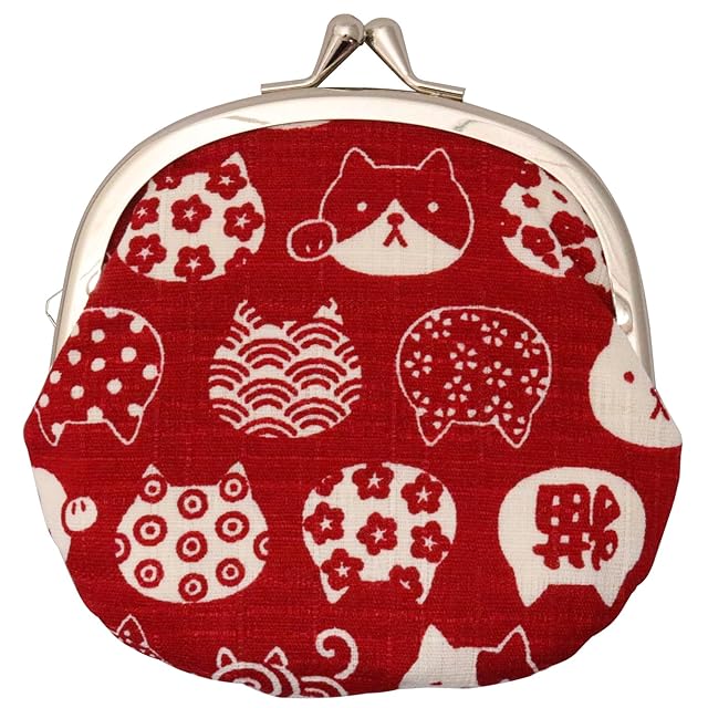 京佑(Kyoyu) 日本製 がま口 財布 小銭 小物入れ 猫柄 にゃんこもん 3.3寸 12×11.5cm 赤