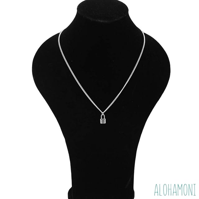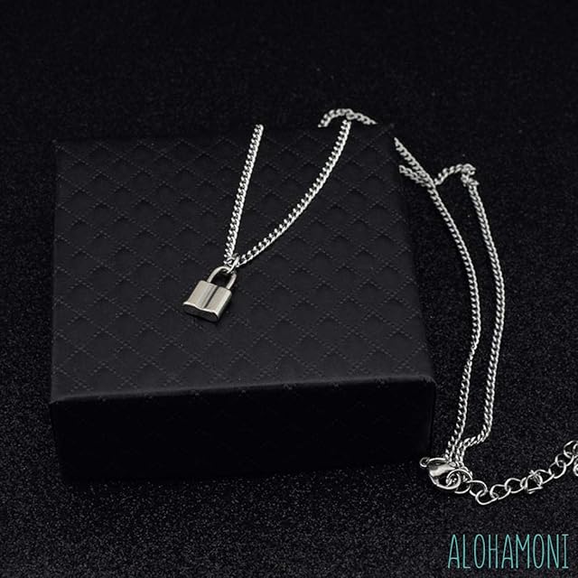 ALOHAMONI (アロハモニ) 南京錠 ネックレス シルバー チェーン 緻密 細身 なめらか ライン ペンダント 小ぶり 鍵 ロック シンプル カジュアル 長さ調整可能 レディース