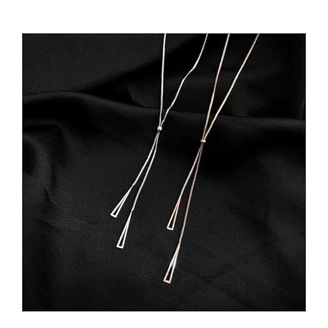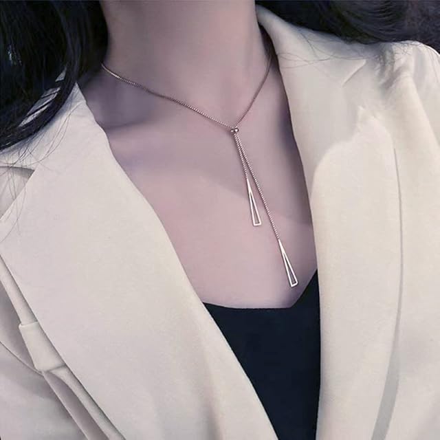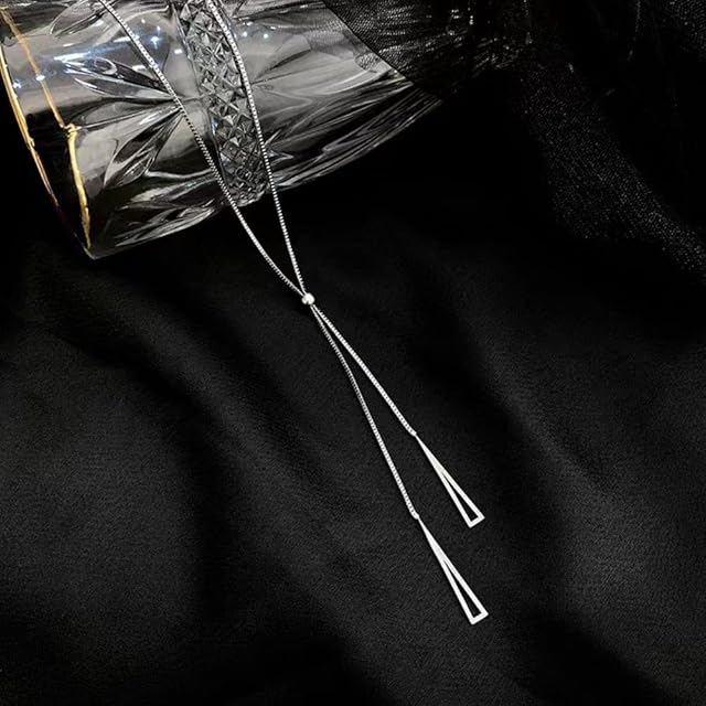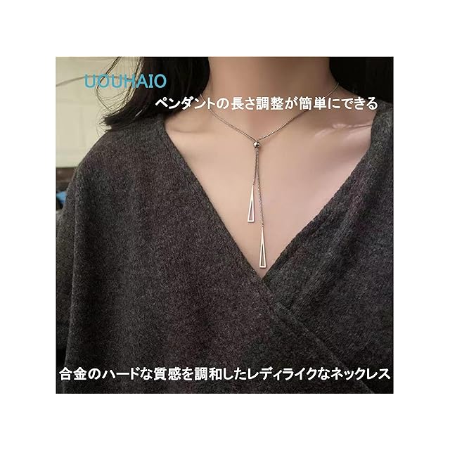 [UOUHAIO] ロングネックレス レディース ファッション 女性用 長いネックレス Y字 キラキラ セーターチェーン スライド調整式 プレゼント 女性 アクセサリー ジュエリー (三角Y型銀)