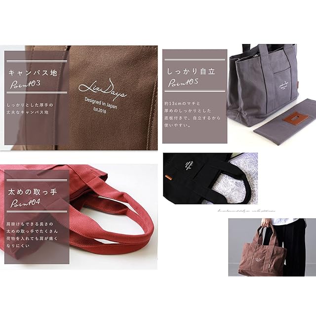 25LZSI キャンバス トートバッグ レディース A4 横 ファスナー付き 大きめ 通勤 通学 大学生 高校生 キャンバストート 自立 無地 仕切り キャンバスバッグ (ライトピンク) | AVENIR