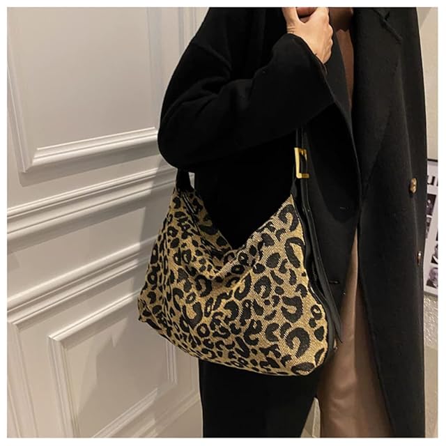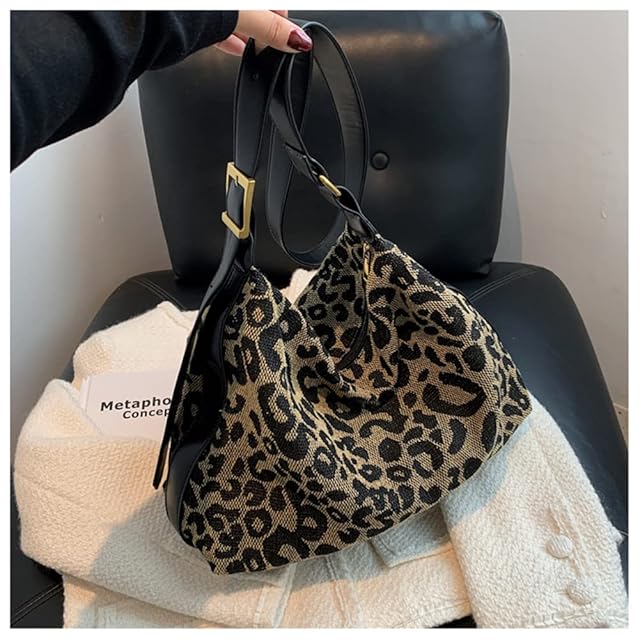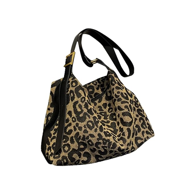 [Ksila] トートバッグキャンバスレディース大容量ショルダーバッグ軽量ヒョウ柄ファッションキャンバスバッグ(FREESIZE黒)