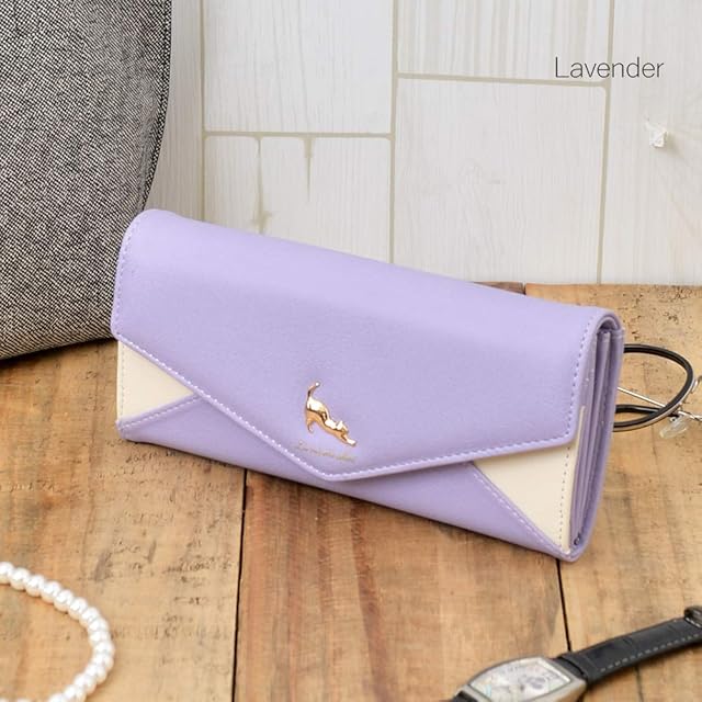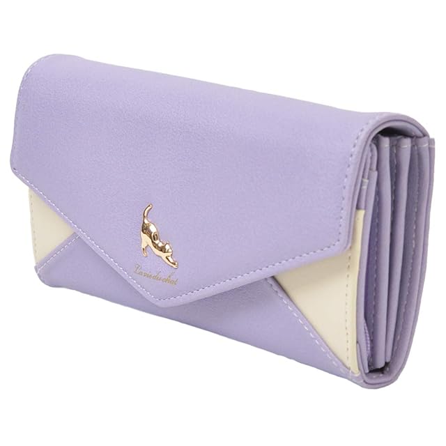 ラベンダー F D-LOOP(ディーループ) 大容量 たっぷり収納 ロング ウォレット 伸び猫チャーム かわいい レター型 長財布 レディース ラウンドファスナー 財布 猫 ネコ ねこ 猫柄 肉球 手紙型 PUレザー 革 合皮 小銭入れ 札入れ 札束 仕切り カード カード入れたくさん 121962-010-733