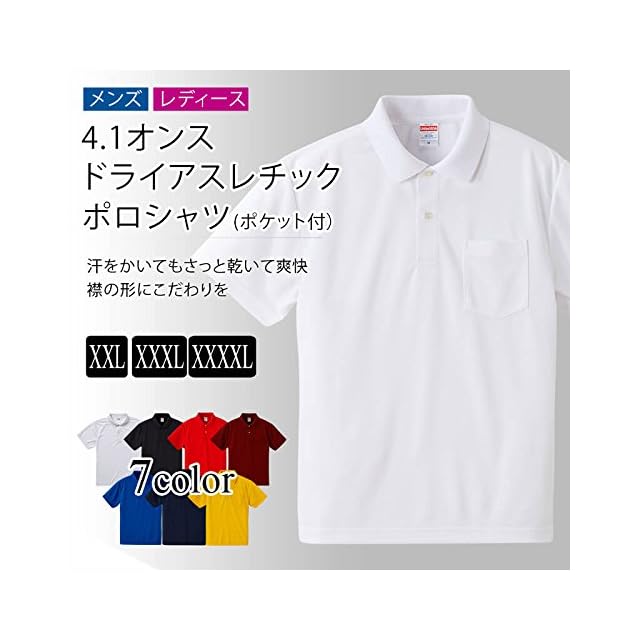 メンズ 4.1オンス ドライアスレチックポロシャツ ポケット付 (001)ホワイト XXXL ua230