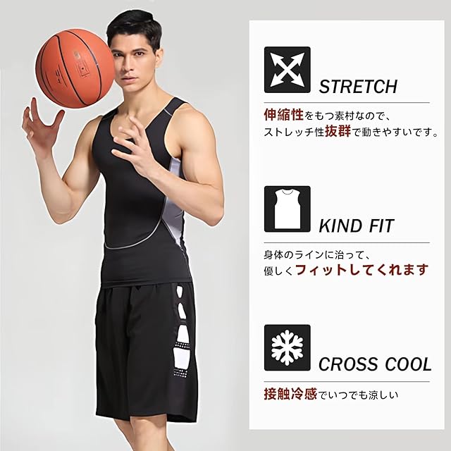 [Barifall] タンクトップ メンズ コンプレッションウェア ノースリーブ スポーツインナー アンダーシャツ 加圧シャツ トレーニングウェア 吸汗 速乾 通気 冷感1007bk-2XL
