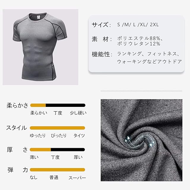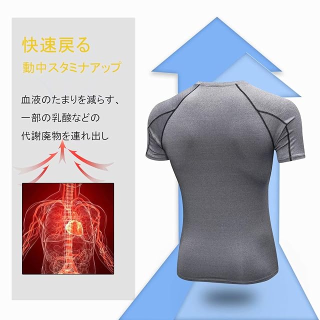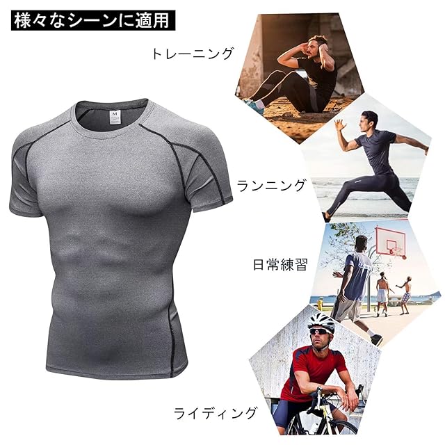 [Muxuryee] コンプレッション ウェア 加圧シャツ メンズ 半袖 トレーニングウェア アンダーシャツ スポーツシャツ 吸汗 速乾 1053GY L