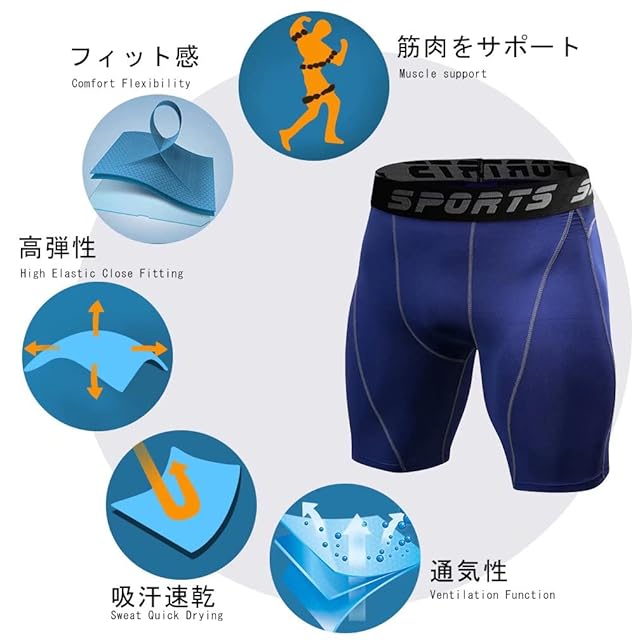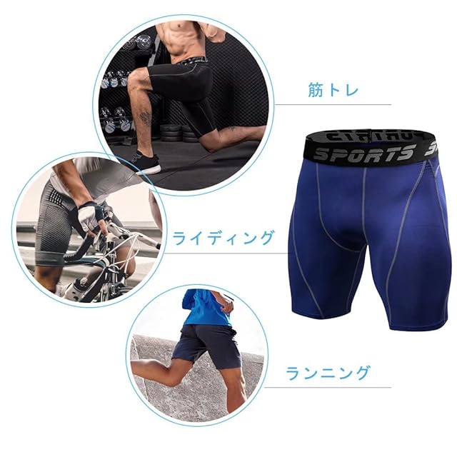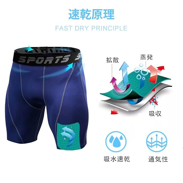 [Muxuryee] コンプレッション ショート タイツ メンズ スパッツ スポーツタイツ ショーツ レギンインナースパッツ夏用 吸汗速乾 加圧 1054 NV L
