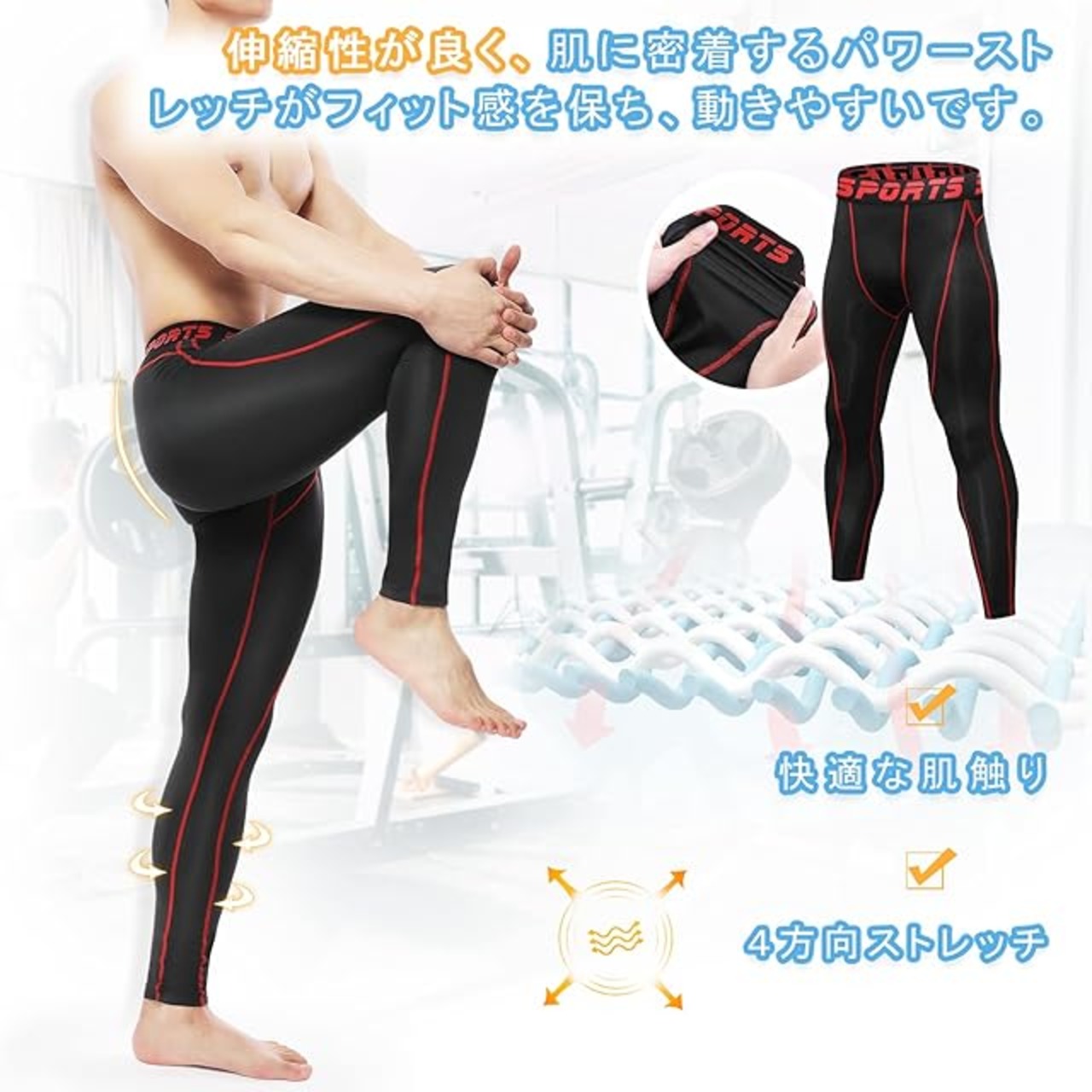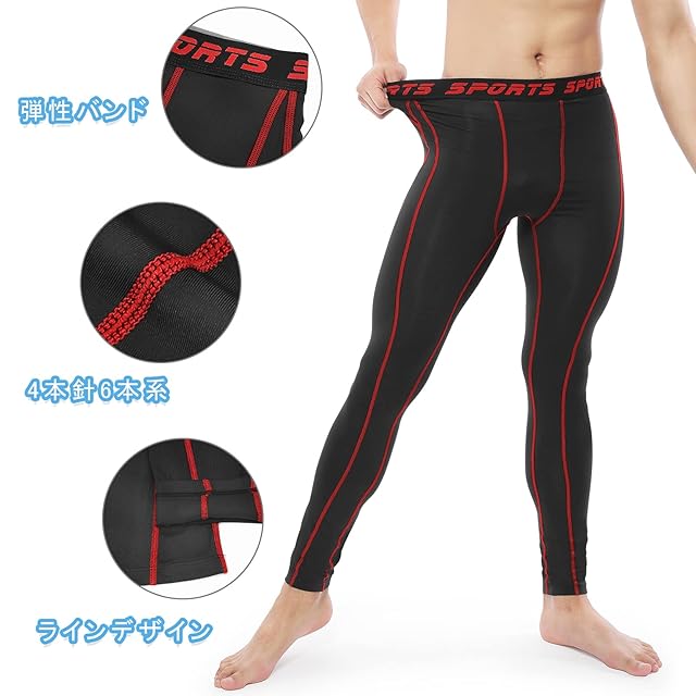 [Barifall] スポーツ タイツ メンズ スパッツ レギンス コンプレッション タイツ パワーストレッチ アンダーウェア [吸汗 速乾 通気 ] BK*RD-2XL