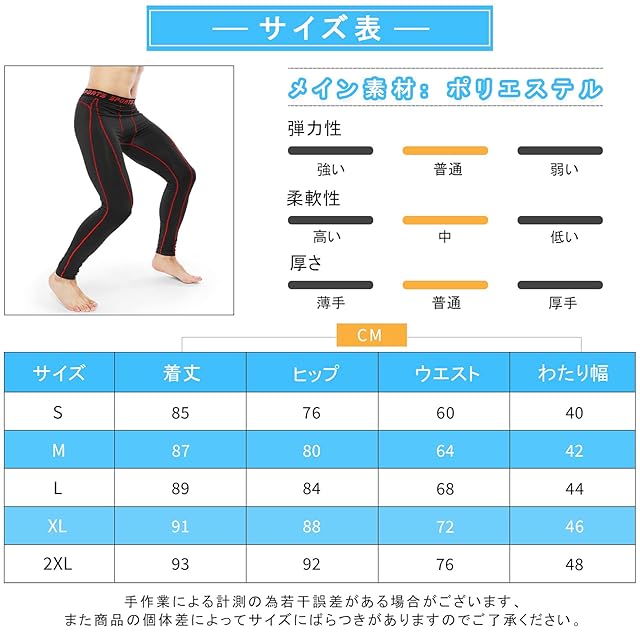 【吸汗速乾通気 】優れた吸汗速乾機能なので汗でベタつかず快適肌に優しいソフトな着心地のコンプレッションタイツ
