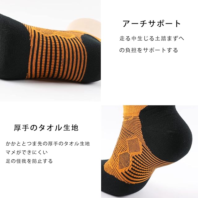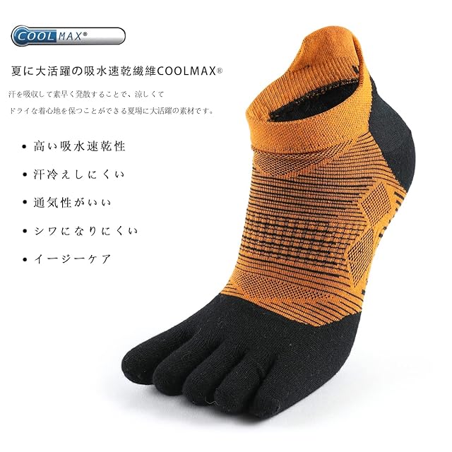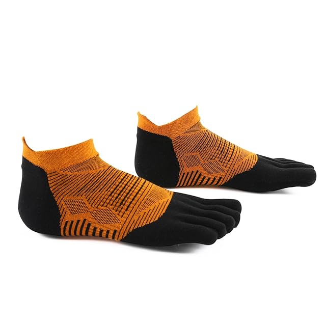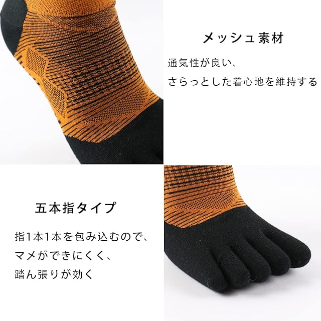 [WRELS] 靴下5本指 ランニングソックス スポーツ ソックス 5本指 五本指ソックス メンズ レディース くるぶし 着圧 22-27cm マラソン ゴルフ 野球 作業用 消臭(橙,S)