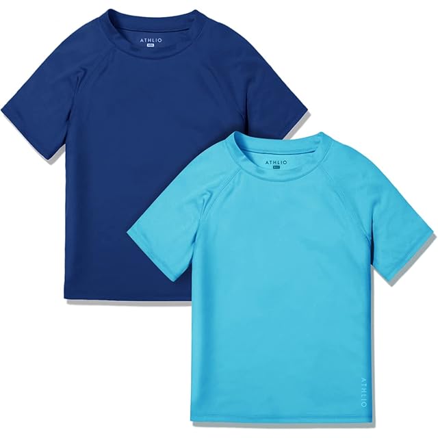 [ATHLIO] 半袖 キッズ ドライフィット スポーツ シャツ 2枚 セット [UVカット・吸汗速乾] 水着 ラッシュガード スイムシャツ 夏 プール 水泳 海水浴 アクティブ Cool ドライ ランニング アスリート フィットネス トップ スケットボール トレーニング サッカー 野球 男の子 女の子 ジュニア 通学 部活 CKS25-VSK_2XS