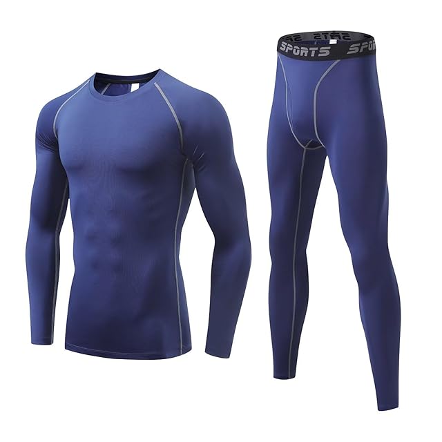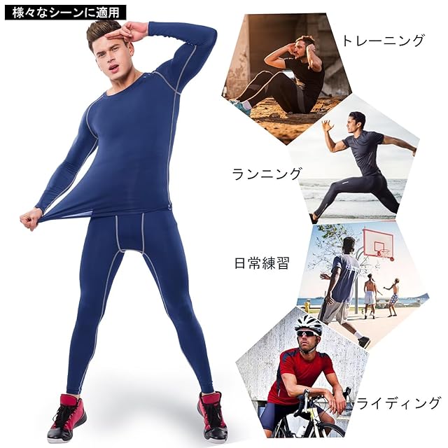 [Muxuryee] スポーツインナー メンズ 上下セット 長袖 スポーツタイツ コンプレッションウェア アンダーシャツ スパッツ 加圧シャツ 夏用インナー スパッツ 冷感 323+3333 NV 2XL
