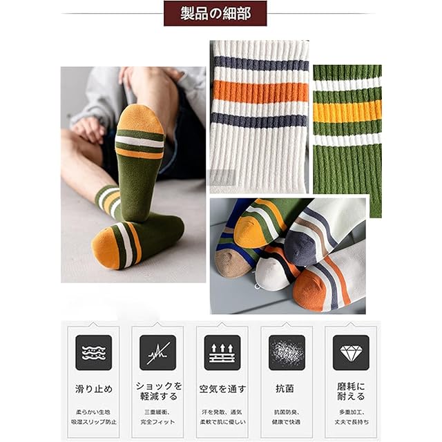 【おゃれ ストライプとリブ柄くつ下メンズ 】この通気コットン蒸れない靴下 メンズ はフィット感を追求するため、上質なコーマ綿を混紡したリブ編み締付加工を採用しました。 サポート感のリブ編みで、洗濯を繰り返しても型が崩れにくいくつした メンズです。 この男性用ソックスは流行遅れないストライプのパターンをくわえ、質感が抜群で、紳士用ビジネスソックス風やかっこいいスポーツソックス風兼備ファション感はもっとアップリブ柄靴下 メンズ です。