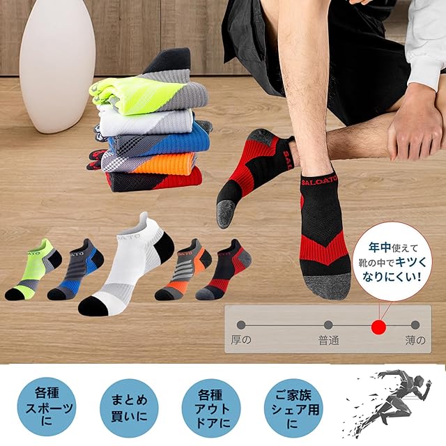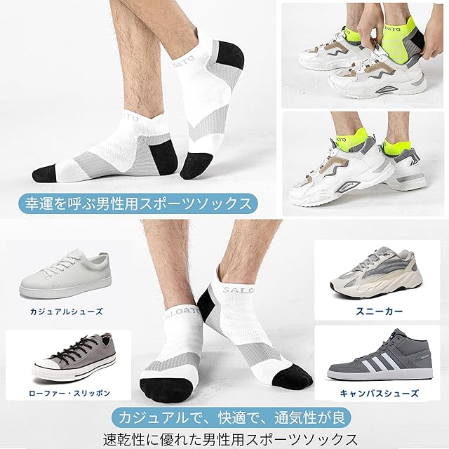 【抗菌防臭通気性】天然綿とポリエステル素材を採用したこのこれらのスタイリッシュな靴下、素材が綿で抗菌、防臭、速乾、通気によく効くフットカバーソックスです,ソックス は伸縮性が良い,全ての指が靴下で覆われるので、蒸れの防止に効果大,長時間運動と歩くても靴に汗を漏れことがありません。