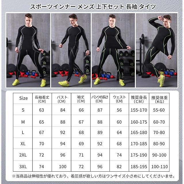 【保温・伸縮性】機能性と保温性を備えたメンズ 長袖 スポーツ tシャツ ロング タイツ。伸縮性が良く、肌に密着するパワーストレッチがフィット感を保ち、動きやすいです。伸縮性に抜群で、激しい運動後も早いコンディション回復する生地を採択。