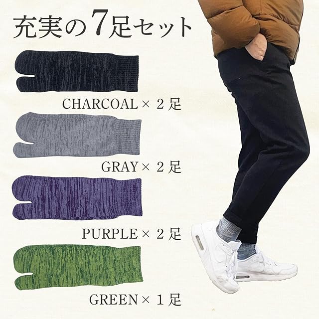 セット内容:グリーン×1足 パープル×2足 チャコール×2足 グレー×2足 計7足