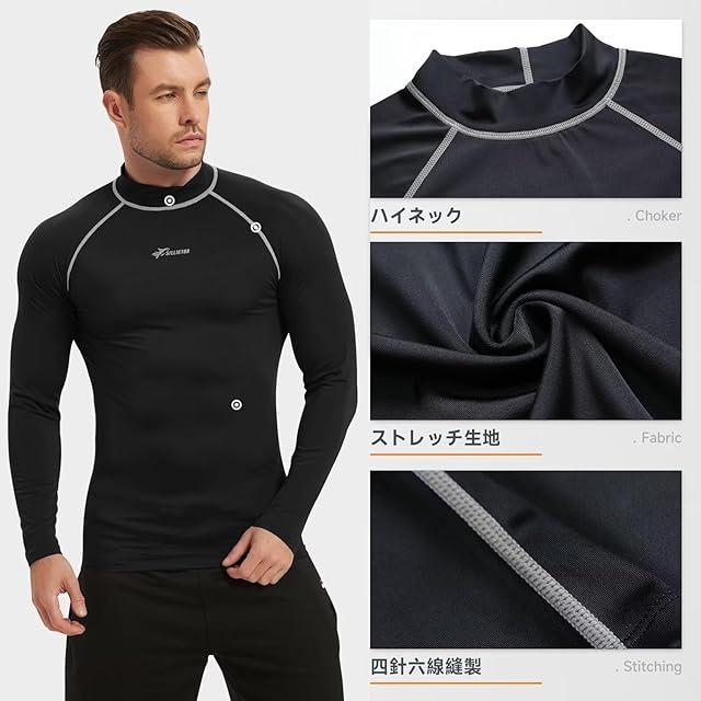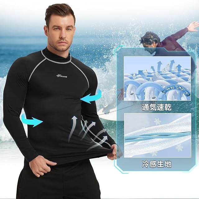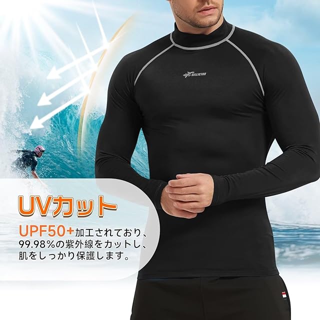 [Sillictor] ラッシュガード メンズ 長袖 水着 ハイネック UVカット 冷感速乾 スイムウェア パワーストレッチ スポーツ コンプレッション 水陸両用 [UVカット・冷感速乾] yc226blk-gr-2XL