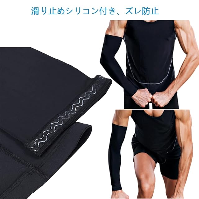 【日焼け防止&滑り止め】UVカット率99%・紫外線保護指数は最高ランクのUPF50+!紫外線や日焼けからお肌をしっかり守ってくれます。アームカバー上腕口には滑り止めシリコンが加工されており、腕にしっかりと固定し、ズレを有効的に防止できます、バスケットボールのような激しいスポーツにも安心!