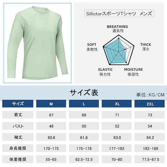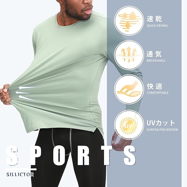 [Sillictor] トレーニングウェア 長袖 tシャツ メンズ スポーツ ロング Tシャツ ストレッチ ラッシュガード 【通気速乾&UVカット】 ランニングウェア yc85gn-2XL