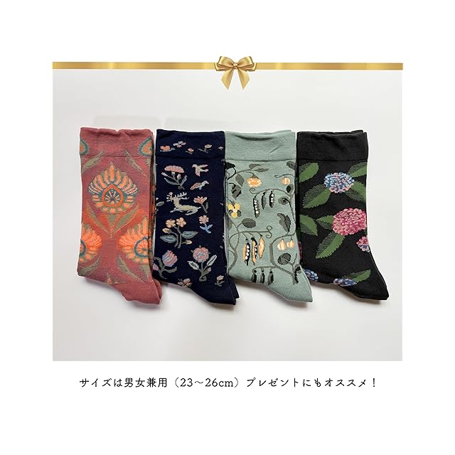 ●柄とセット数:ボタニカル柄・4足セット うみうま1足、フラワー 1足、海のアネモネ 1足、秋の川辺 1足