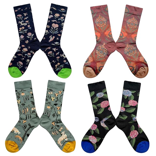 [ETSMON] 靴下 レディース ソックス お洒落 お花柄 個性派デザイン ハイクルー丈 綿 伸縮性 通気性 全年通用 ファンキー 男女兼用 カジュアル カップル揃い プレゼント 4足セット 紫陽花