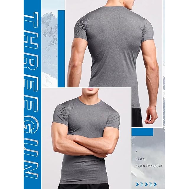 [THREEGUN] コンプレッションシャツ メンズ 半袖 コンプレッション アンダーシャツ 冷感インナー スポーツ シャツ ランニングウェア 通気 吸湿 速乾 UVカット(321gr-2XL)
