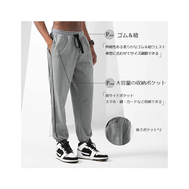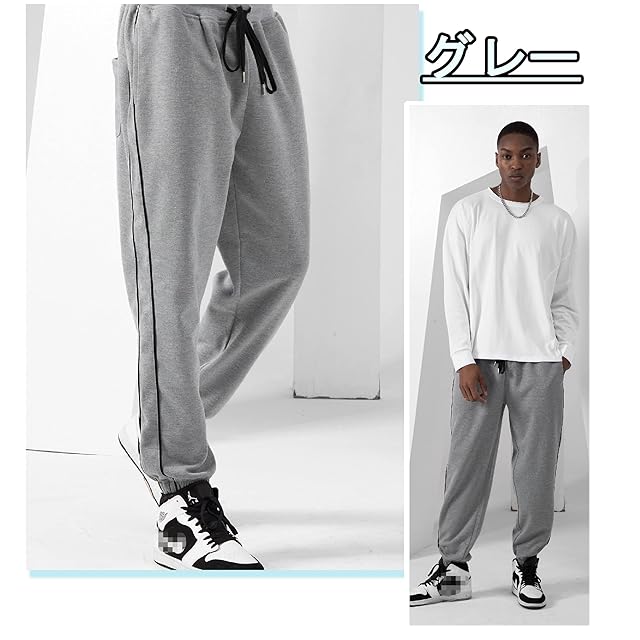 [Manatsulife] スウェットパンツ トレーニング メンズ セットアップ 下 ランニング 部屋着 ジム 筋トレ ストレッチ ダンス スウエット おしゃれ 大きいサイズ 綿 ゴム付き カップル ルームウェア イージーパンツ 春 秋 冬 K-28 (グレー, 2XL)
