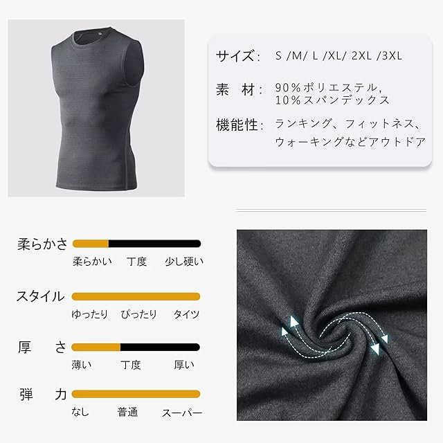 [Muxuryee] ノースリーブ コンプレッションインナー メンズ 加圧タンクトップ スポーツインナー 加圧シャツ アンダーシャツ トレーニングウェア 吸汗速乾 接触冷感 1002 GY 2XL
