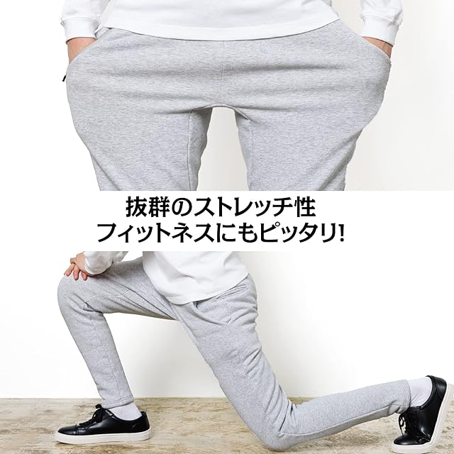 裏起毛で暖かいスリムタイプのメンズジョガーパンツ。ストレッチ性に優れ、裾にリブがないので足長効果を発揮します。ルームウェアはもちろん、フィットネス、カジュアルな私服にピッタリのアイテムです。