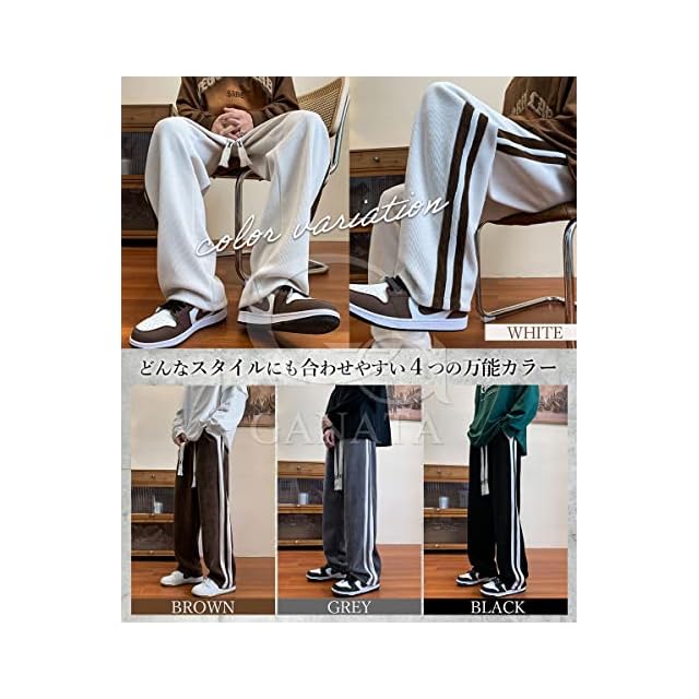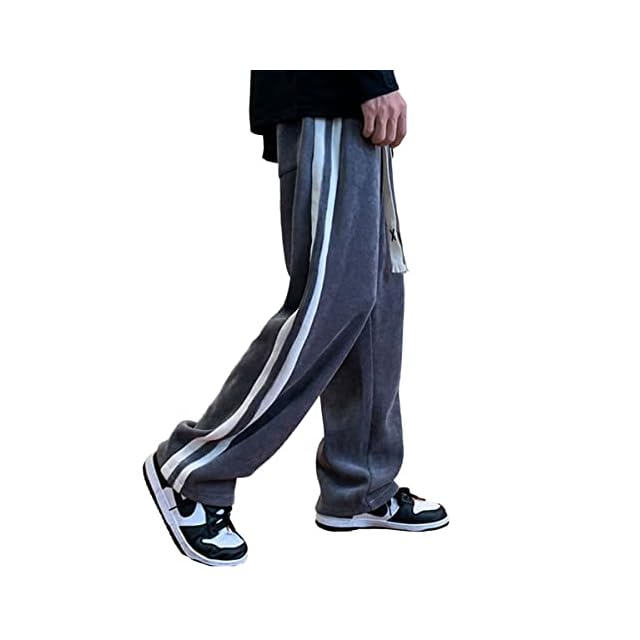 [ガナタ] スウェットパンツ メンズ ゆったり 大きいサイズ 薄手 パンツ ジョガー ライン おしゃれ ルームウェア 韓国 ジャージ スウェット ストレッチ スタンダード 切替え 紐 かっこいい リブなし 男 太め きれいめ ダンス トレーニング 伸びる ダボダボ ドローコード 部屋着 オーバーサイズ パジャマ ポリエステル ストレート テーパード ワイド ユニセックス ヨガ L (グレー)
