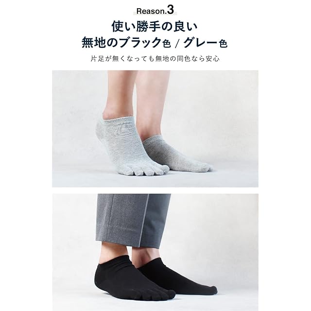 [PIENILO] 五本指ソックス メンズ くるぶし 黒色/グレー 5本指 靴下 かかと付き ショート 25-27cm 4足セット (グレー4足)