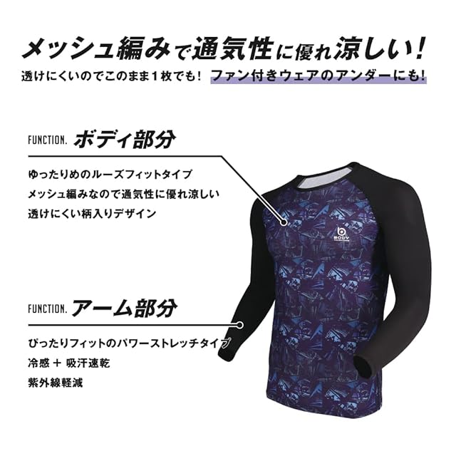 透けにくく、ファン付きウエアにも最適