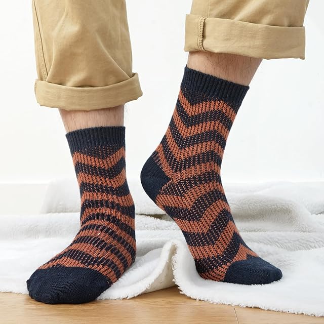 [Yazon] 靴下 メンズ 冬 あったかソックス 厚手 おしゃれ 男性用 くつした メンズ 暖かい靴下 防寒 綿 ウールソックス 吸汗 紳士 ビジネス スポーツ くつ下 冬用 室内 保温 カジュアル アウトドア 冷え性靴下24-27cm(5color)