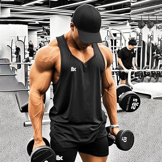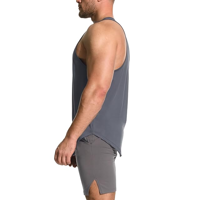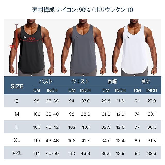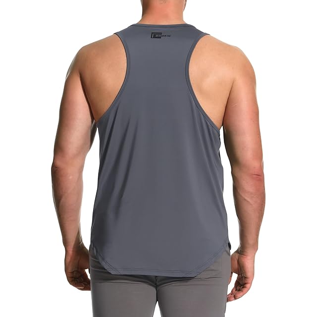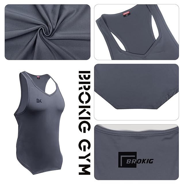 [BROKIG] 清逸 2枚組 タンクトップ メンズ 速乾 軽量 トレーニング ウェア ストレッチ 不規則なUネック 吸汗速乾 伸縮性 夏 ジム ノースリーブ 筋トレ うぇあ スポーツ フィットネス ボディビル おしゃれ (ダークグレー+ホワイト)
