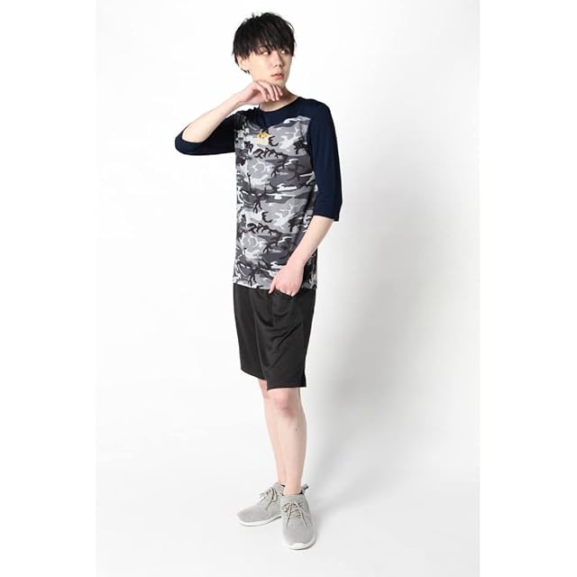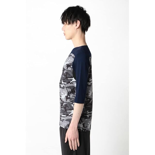 ActiveM アクティブーム 七分袖 コンフォートインナー アンダーシャツ 野球 丸首 カモ柄 吸汗速乾 ストレッチ (XXL, ネイビー)